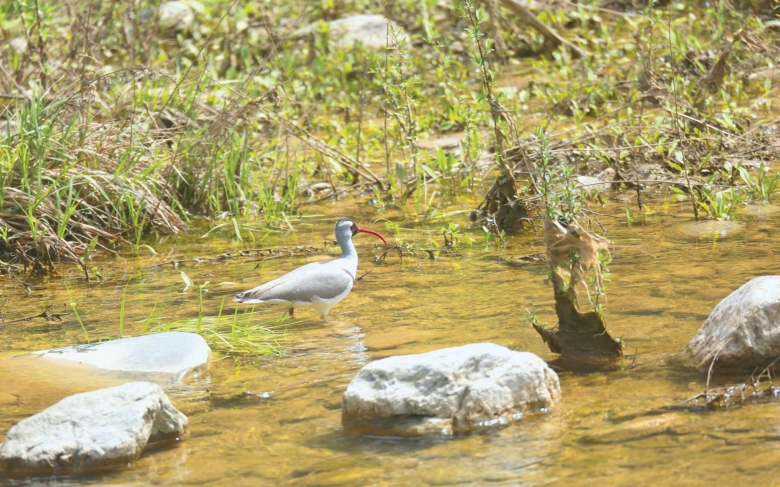 虹膜红色;嘴长而向下弯曲,呈弧形,颜色在繁殖期为亮红色,其他季节为暗红色;跗跖和趾在繁殖期为亮红色,其他季节多呈粉红色。