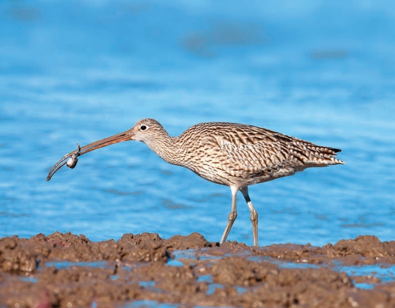 虹膜暗褐色;嘴细长而下弯,黑色,嘴基粉红;跗跖和趾灰色。