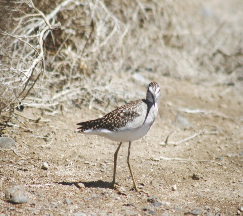 头顶棕色,具黑褐色纵纹;眉纹白色,一条不甚清晰的暗色贯眼纹从嘴基经眼先到眼前,然后弯曲折向眼下,到眼后与暗色耳羽相连;后颈淡褐色,具细的暗色纵纹。背、肩羽中央黑色,具宽的栗棕色、橙栗色和白色羽缘。三级飞羽具宽的棕色边缘;翼上覆羽褐色,具皮黄色和淡栗色羽缘;翼上大覆羽和内侧初级覆羽具窄的白色尖端,在翼上形成一条窄的白色翼斑;初级飞羽灰褐色,第一枚初级飞羽羽轴白色,其余初级飞羽羽轴褐色;次级和三级飞羽灰褐色,基部白色。腰和尾中央黑褐色,腰和尾上覆羽的两边为窄的白色,尾的两侧为灰色;下体白色;胸灰皮黄色,具黑褐色纵纹,在胸中部常常不甚明显,而两侧却甚显著。