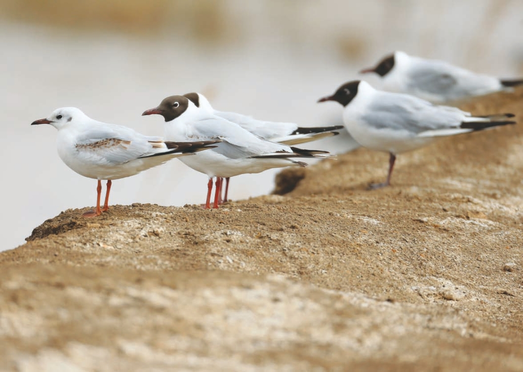 虹膜暗褐;嘴夏天暗红色、先端黑色,冬天鲜红色、先端稍暗;跗跖及趾夏天赤红色,冬天转为橙黄色,爪黑色。