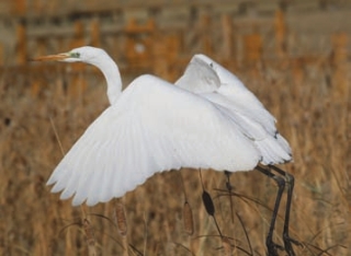 冬羽和夏羽相似,全身亦为白色,前颈下部和肩背部无长的蓑羽,嘴和眼先为黄色。