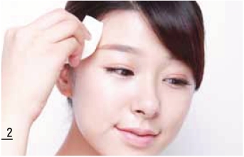 与涂抹粉底液一样,脸周轮廓处也使用粉扑将粉底薄薄地延展开。