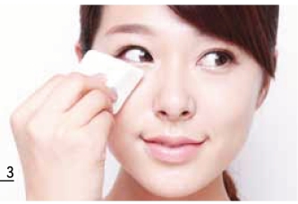 眼角、嘴角表情活动频繁的部位,很容易形成细小的纹理,涂抹时用粉扑上残留的粉凝霜边轻按边薄薄附着上粉底。