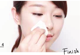 由于眼周的细纹或鼻周的表情纹等细纹容易导致堆粉,应先从面积大、没有细纹的部位开始涂起。由内向外像涂抹粉饼一样滑动粉扑。