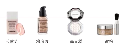 ▶含细微光子的妆前乳,含美容液成分的保湿粉底液,用遮瑕产品制造高光……,产品的精心搭配,为妆容增添立体感与优雅格调。