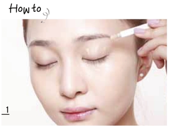 用遮瑕膏或遮瑕笔在整个上眼睑斜向画几条线,用指腹轻轻边按压边延展开。