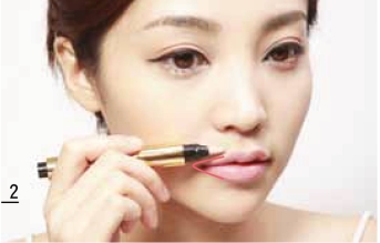 用指腹蘸取遮瑕霜在唇部下方黯沉部位涂几个点,用指腹向两侧均匀推抹开。用容易延展的遮瑕霜修饰唇周与嘴角,遮盖暗影,突出唇色与唇部轮廓。