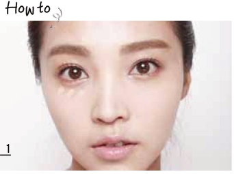 上眼睑与眼角、眼尾的肤色矫正与提亮,使眼部轮廓更清晰。用画线遮瑕的手法,进行稍稍的遮盖,效果最自然。