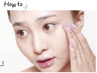 全脸涂抹保湿粉底液,用中指的整个指节蘸取粉底液涂抹开。下眼睑与眼睛周围用指尖薄薄匀开。