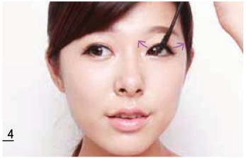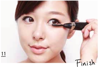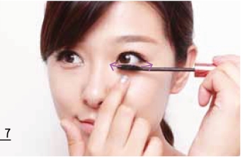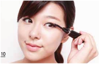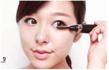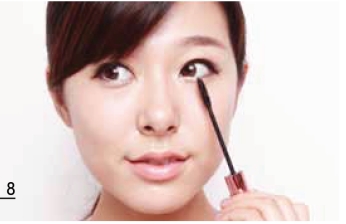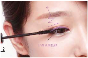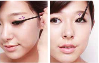 point 睫毛膏平行于地面,将靠近眼尾部分的睫毛向外侧拉伸,可以增加眼部横幅,使眼形显得横长,打造女人味十足的长眼形;将睫毛膏垂直于睫毛根部,将睫毛一根根向上拉伸,可以增加眼部的纵幅,给人可爱的眼部印象。