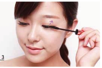 将睫毛按不同部分进行不同方式的刷涂。中部的睫毛要向上刷涂,眼角的睫毛要向眉头方向刷涂,而眼尾的睫毛则要向太阳穴方向刷涂。