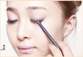 选择平头刷,侧面可以呈一条线,便于调整眼线粗度。描画时,从眼角下笔容易一开始就涂厚重,先从眼珠外侧描至眼尾,再补画眼角部位的眼线会比较适宜。