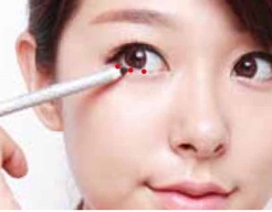 用眼线笔点涂下睫毛间隙,或像画睫毛般在自身睫毛间隙细细描画,使下眼线的效果尽可能自然。