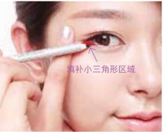 上眼线拉长时,在下眼尾处,用眼线笔或眼影填补小三角形区域,与上眼线的延长处衔接上。