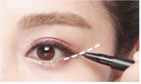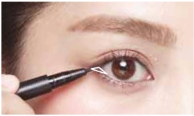 眼线能非常简便、自由地改变眼形,画眼线之前先确认眼尾角度,眼线末梢的长短与粗细,平行抑或上扬,都直接影响了眼睛的形态与印象。