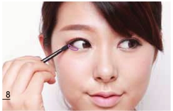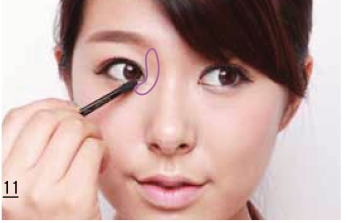 point 晕染下眼影时,不要涂抹整个下眼睑,否则容易显得呆板,只要窄幅涂抹黑眼球至眼尾即可。也可以只涂黑眼球下方,显得黑眼球更醒目。