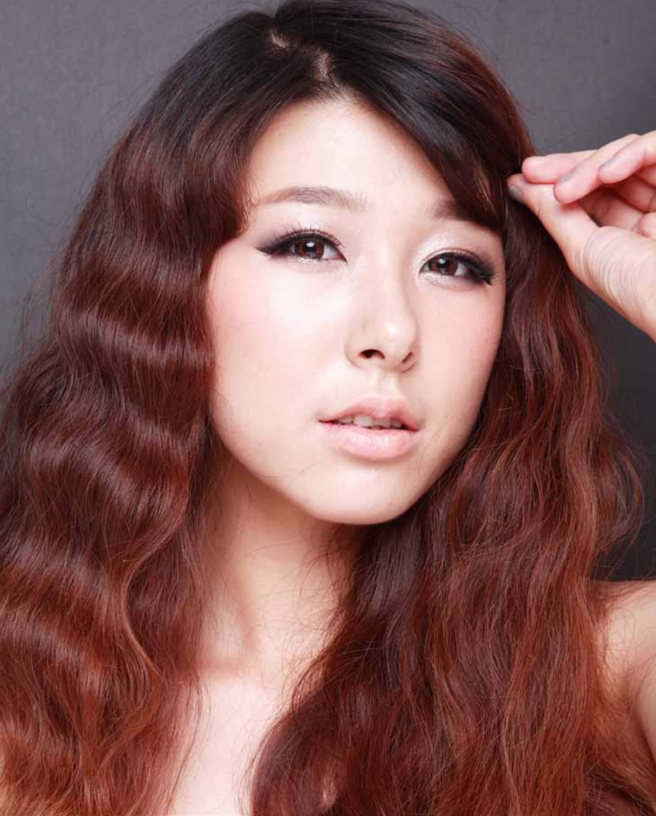 1 下垂眼妆将颜色移到下眼尾部,整体线条往下延伸,在视觉上加重眼尾的存在感,打造出看起来像在笑的弯月形垂眼。和上扬效果的眼妆同样可以起到大眼作用,只是借助眼尾微垂的“笑眼”,让眼神温柔而令人倍感亲近。