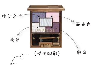 将淡雅的浅粉色“中间色”眼影从眼角至眼尾宽一些晕染下眼睑,提升眼部的透明感。