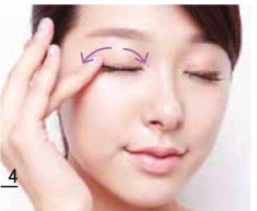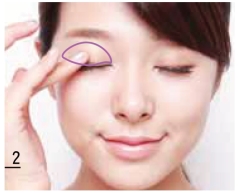 从睫毛根部上方开始,用指腹轻轻左右来回涂抹,从下至上将颜色淡淡晕开。