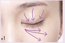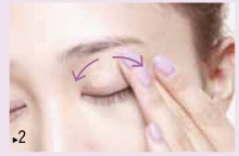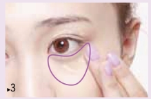从眼角开始向眼尾方向,在上眼睑用遮瑕笔画3条短线。眼下容易出现暗沉、细纹的部位,斜向下呈放射状画3条线。注意用量要尽可能少一些。