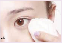 眼周轻扑珠光蜜粉,提亮眼部,帮助吸收分泌的油脂,预防眼妆花妆,使遮瑕效果更持久。