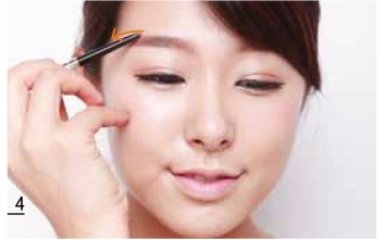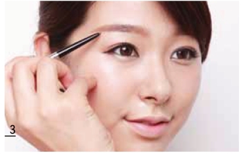 用眉笔沿眉毛底边描画细线,即使自身的眉毛有些不整齐,底边的线条会让眉形看起来显利落许多。