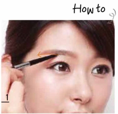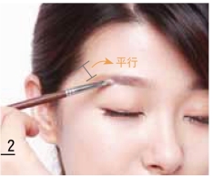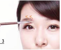 用眉笔顺眉头的角度,沿眉毛下缘,从眉头向眉峰描画偏直的线条,加强眉形下部轮廓的清晰度,使眉形更鲜明。
