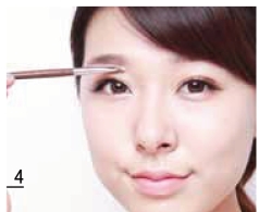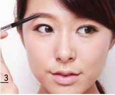 为了避免破坏眉粉描画的线条,不要逆向染色,而是从眉头向眉尾涂刷眉毛表层,提升柔软质感并提亮眉色。