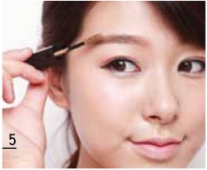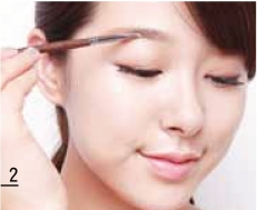 眉头填色时只需要使用刷头上剩余的眉粉即可。用眉刷由下向上,顺着眉头毛发生长方向晕染,注意不要刻意描画,而是补足眉头形状。