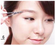 使用染眉膏后,眉毛走向经过整理与固定,长出轮廓外的毛发就更容易发现,用眉剪一根一根小心地剪掉1毫米左右的毛稍即可。