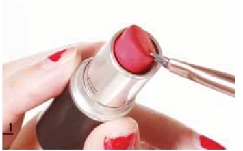 用唇刷蘸取唇膏