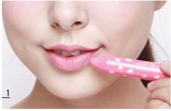 2 不用描画唇线,而是用接近肤色的肉粉色唇彩笔描画外轮廓,消除了唇部轮廓与周围肤色的反差,与肤色自然融合。