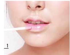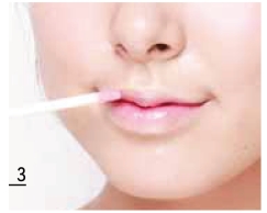 用唇彩涂抹整个唇部,唇缘要涂得薄一些,避免脱妆。涂抹时微咧嘴,舒展唇纹,使唇彩更好地深入纹理。
