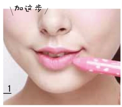 在唇彩笔描画的底色上重叠涂抹唇膏,唇膏的显色度会更好,且颜色也更牢固。