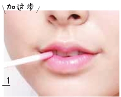 唇彩的刷头顺畅地沿轮廓涂抹上下唇,唇部中央可以重复涂抹两下。