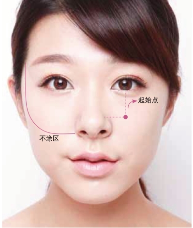 涂腮红的地方会让人感觉是脸颊,这样一来,如果腮红颜色过于靠近脸部轮廓,看起来脸颊就被横向拉宽,显脸大。同样为了防止显脸颊向下坠,腮红不要扩大至凸显颧骨形状的地方。