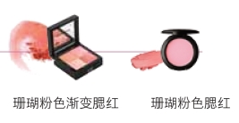 ▶珊瑚粉色中混合了粉色与橘色,其中增加了红色的分量,带出血色感又与肤色融合度好,能呈现出年轻、健康的印象。
