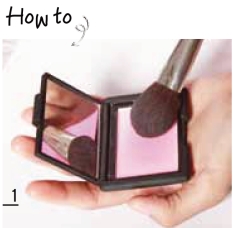 使用与肤色融合度较高的浅肉粉色腮红,左右移动刷头蘸粉,使刷毛内侧也能充分着粉。