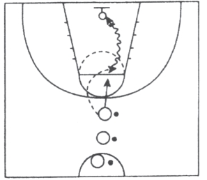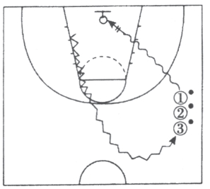 (2)半场三对三攻守。防守采用人盯人防守,不许换人。进攻队员不许掩护,主要利用投篮和突破结合技术来进攻。训练一定次数或成功一定次数后,交换攻守位置,继续进行训练。