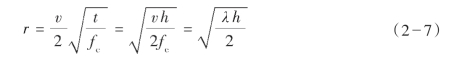 设界面深度为h,地层为各向同性弹性介质,自激自收的双程时为t,地层速度为,地震波主频fc,通过推导可得横向分辨率r为