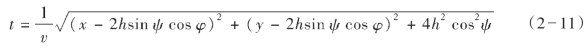 由式(2—10)可以看出,信号的最小视波长与沿观测方向传播的视速度及最高频率fmax有关,在二维情况下,界面反射波的时距曲线方程可以表示为