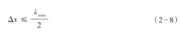 式中,Δx为可以选用的最大沿测线方向的道间距;λmin为信号的最小视波长(沿测线方向)。