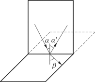 如果地震波以α角入射到介质分界面,它的一部分能量经界面反射,以α角出射形成反射波,另一部分能量则透过界面,以β角折射至下一个岩层,形成透射波,则称α角为入射角,α′为反射角,β为透射角(如图3—12所示)。