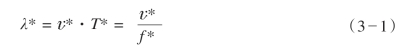 在波剖面图中,最大的正位移的点叫作波峰,最大的负位移的点叫作波谷。两个相邻波峰或波谷之间的距离叫作视波长,以λ*表示 (即在一个周期内波前进的距离)。波长的倒数叫作视波数k*。波前和波后以速度*向外扩大,在一个周期内,沿x方向传播的距离是一个波长,所以