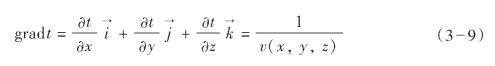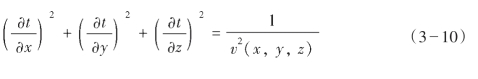 地震波在介质空间传播时,其中任意一点M(x,y,z)都可以确定波前到达该点的时间值t,因此波的传播时间可以看作坐标的函数,即