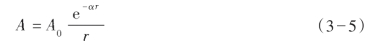 波在介质中传播时,由于波前面的逐渐扩大,能量密度减小,使振幅随距离而衰减,称为几何衰减。但是,由于地质介质的非弹性性质,致使波在传播过程中的衰减比在弹性介质中大,由于介质非弹性所引起的衰减现象称为吸收。因此,波的振幅值A可用下面的经验公式来表示: