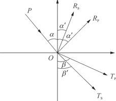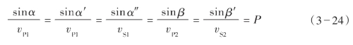 式中,α是入射角,α′、α″分别为纵波和横波的反射角,β、β′分别为纵波和横波的透射角,P1、