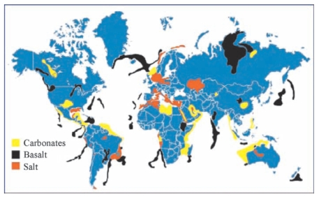图3—43 全方位地震采集对各地的盐岩玄武岩和碳酸盐探测