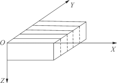 当TI介质的对称轴水平时,称其为HTI(Transverse Isotropy with a Horizontal axis of symmetry)介质,即具有水平对称轴的横向各向同性介质。HTI介质近似地表示空间排列垂直裂隙而引起的各向异性,也称为扩容各向异性介质,简记EDA(Extensive Dilatancy Anisotropy)介质。EDA介质是典型的方位各向异性介质,图3—40为EDA介质示意图。