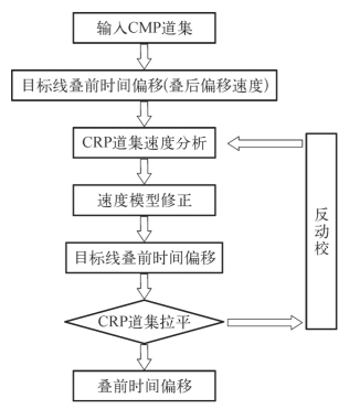 (4)基于生成的共反射点道集,利用剩余速度延迟分析和层析成像等技术迭代修改和优化层速度—深度模型;
